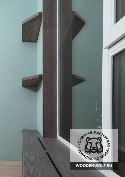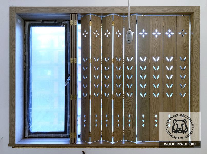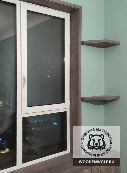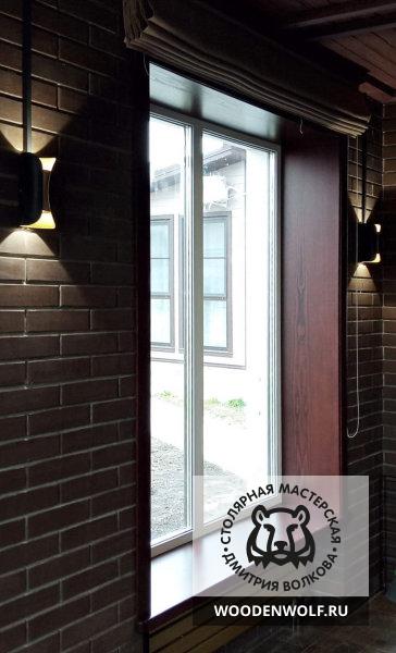 Оформление окон откосами, наличниками, ставнями, подоконниками, полками и пр.
